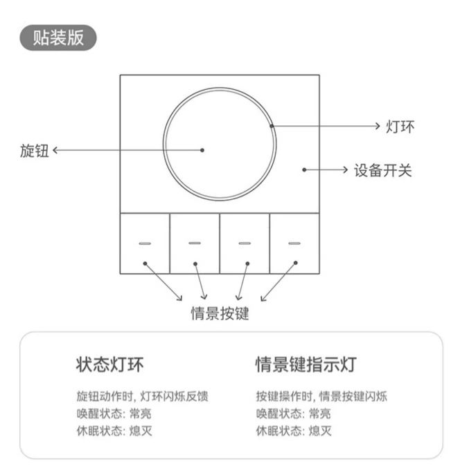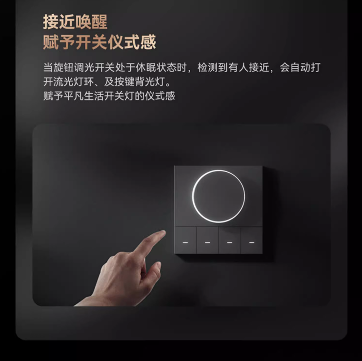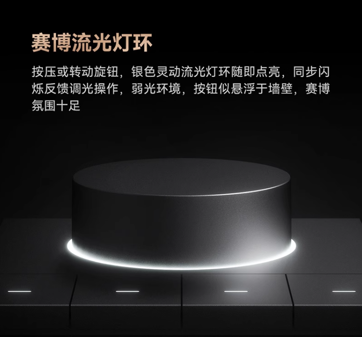 旋钮无极调光 赛博流光灯环 四路空间情景 接近唤醒自动休眠
