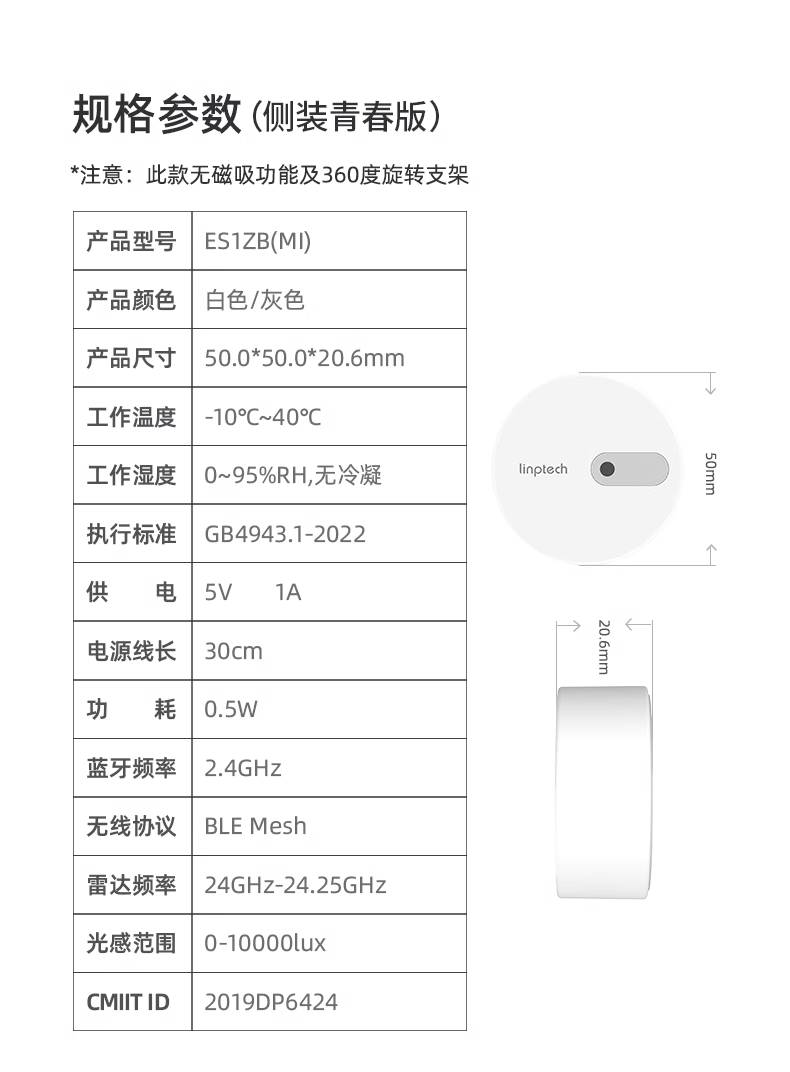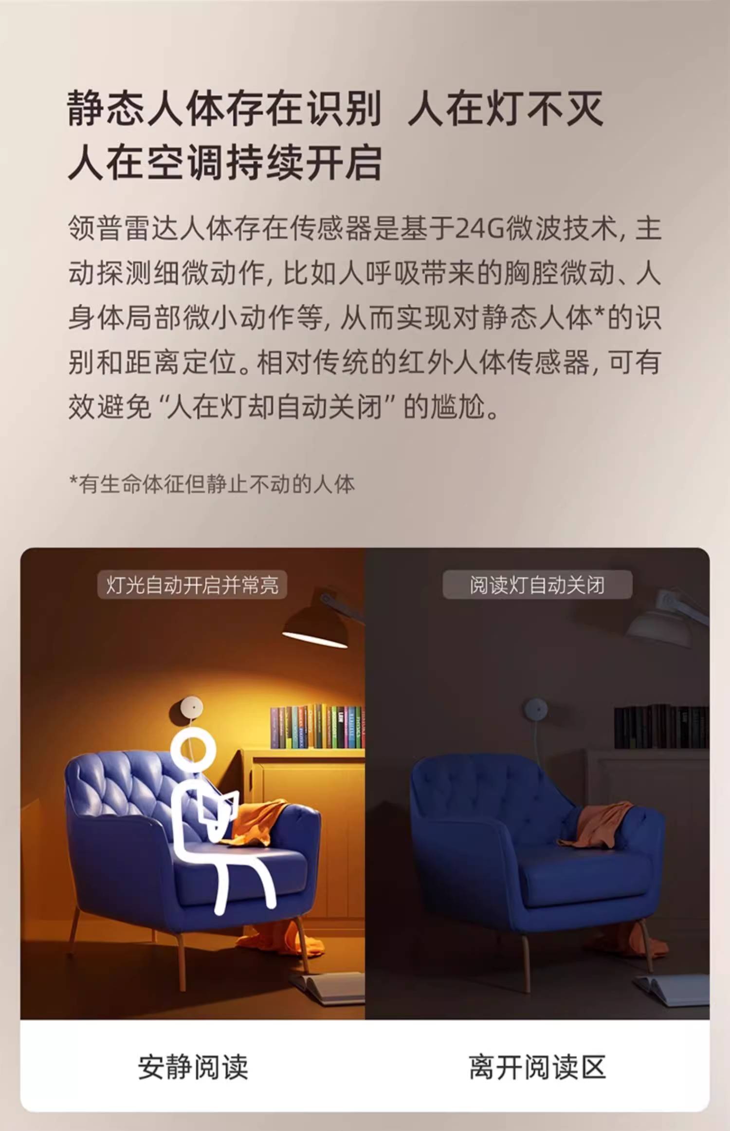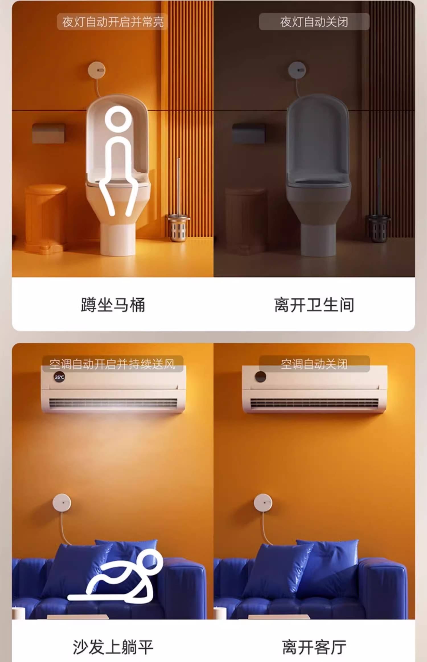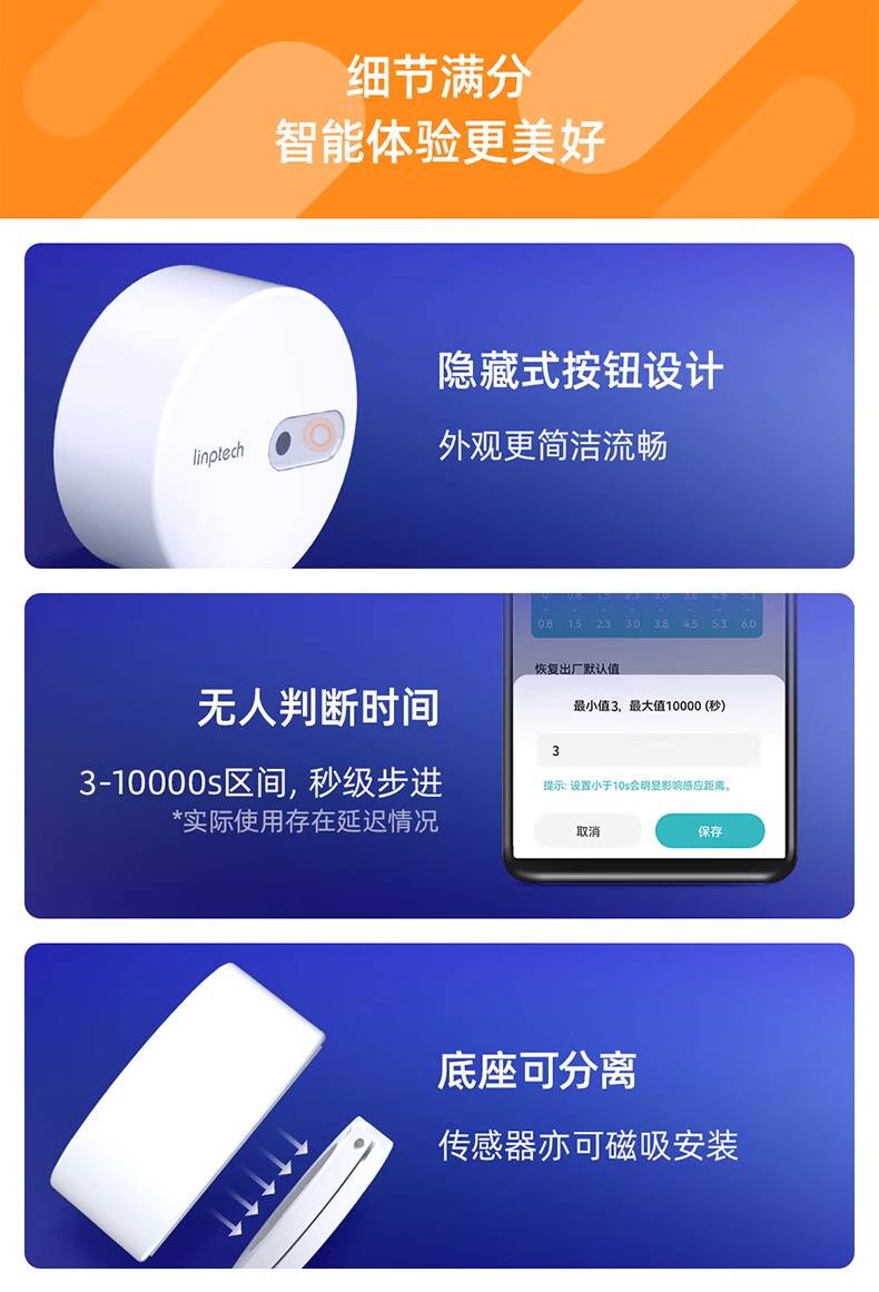 6米感应距离 8档间隔式可调 最大180°感应角度 无人判断时间秒级步进 接近远离感应