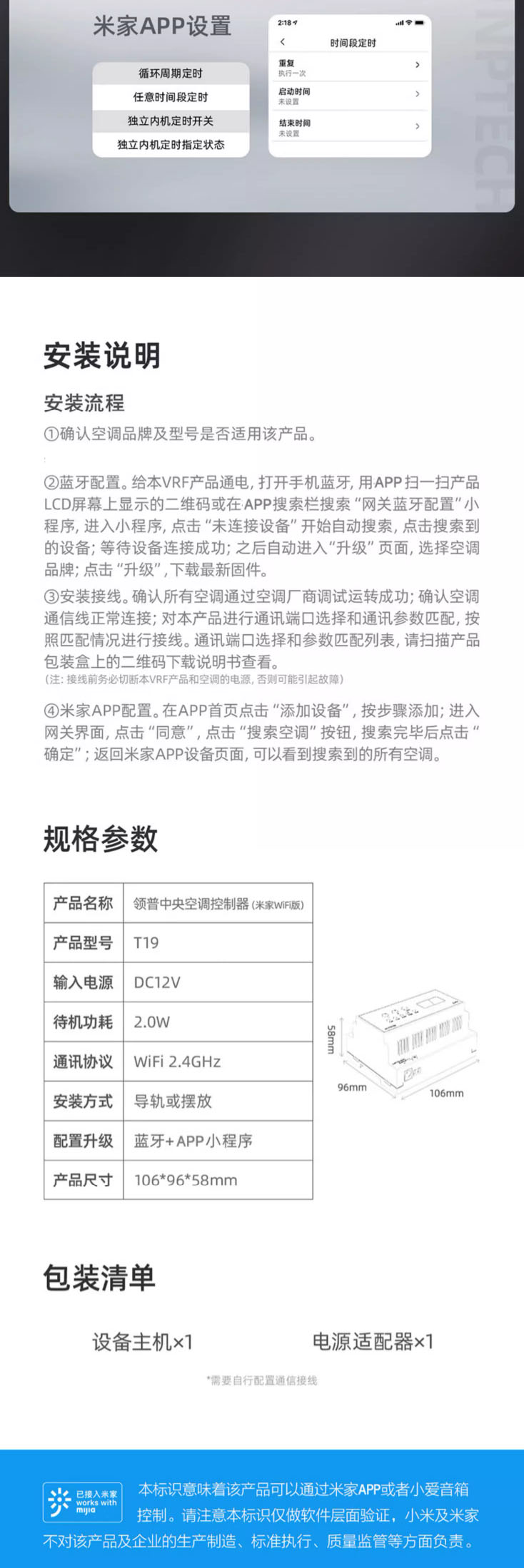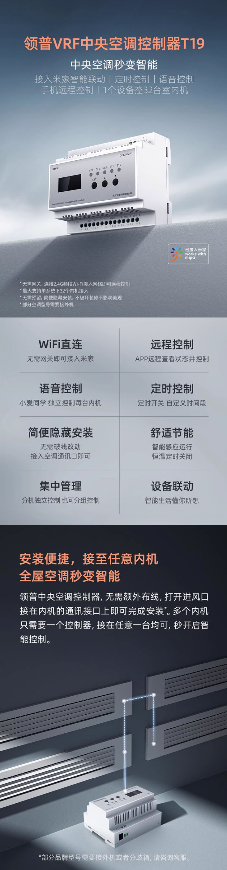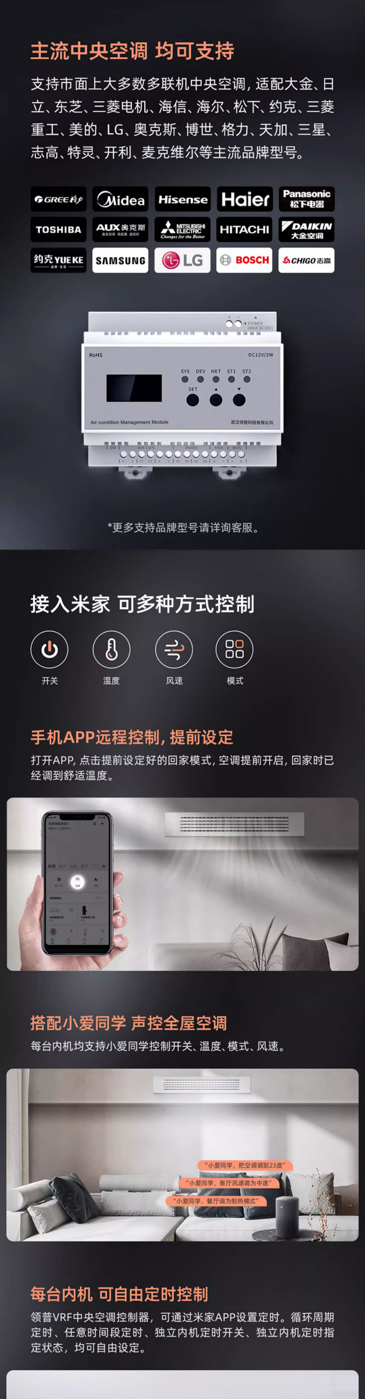 空调接入米家智能联动 定时控制 语音控制 手机远程控制 1个设备控32台室内机