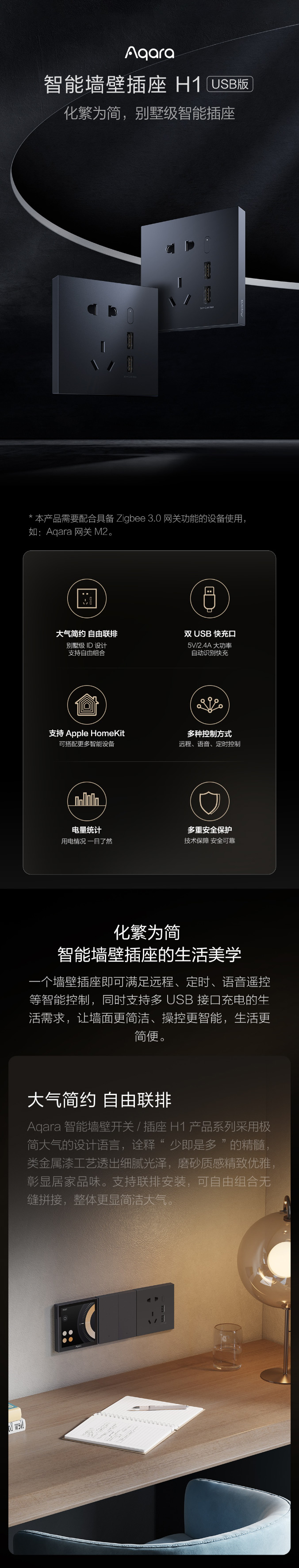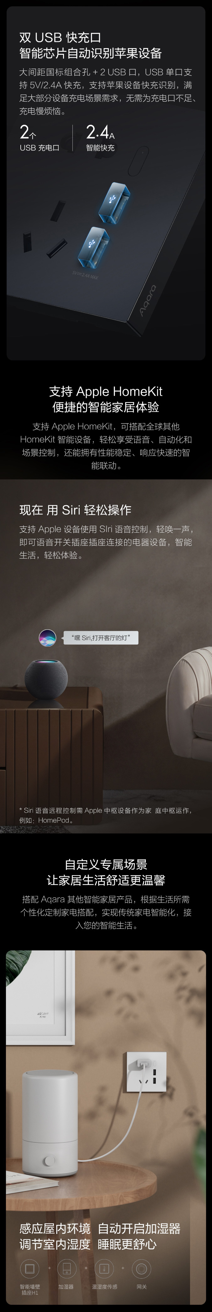 Aqara绿米智能墙壁插座 H1 USB版