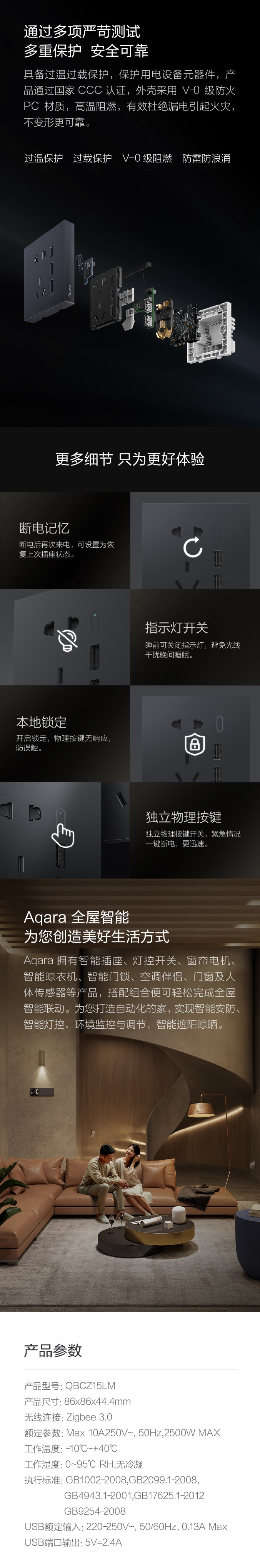 别墅级智能插座 双USB快充口 大气简约自由联排