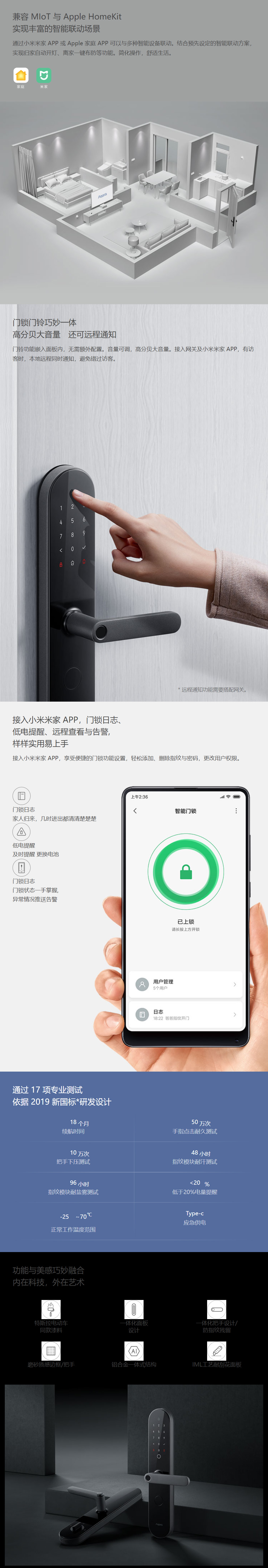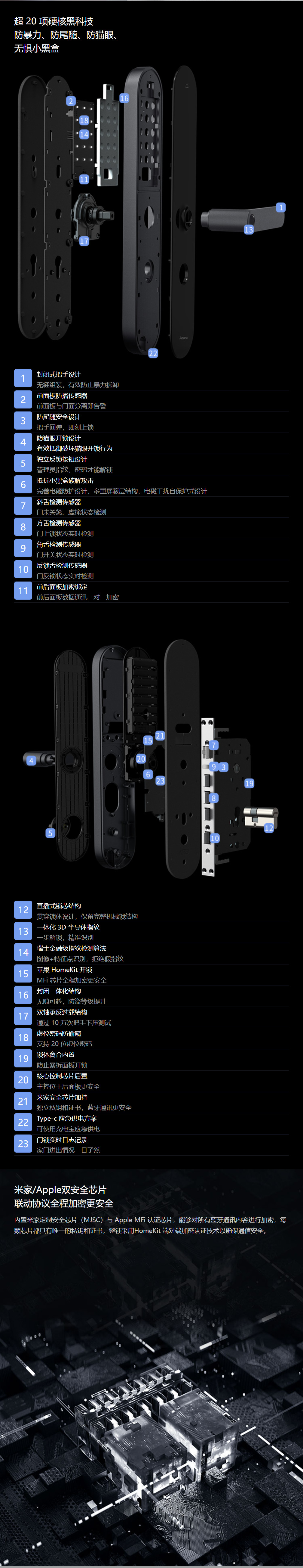 米家Apple双安全芯片 超20项黑科技 直插式C级安全锁芯 7种便捷开锁方式