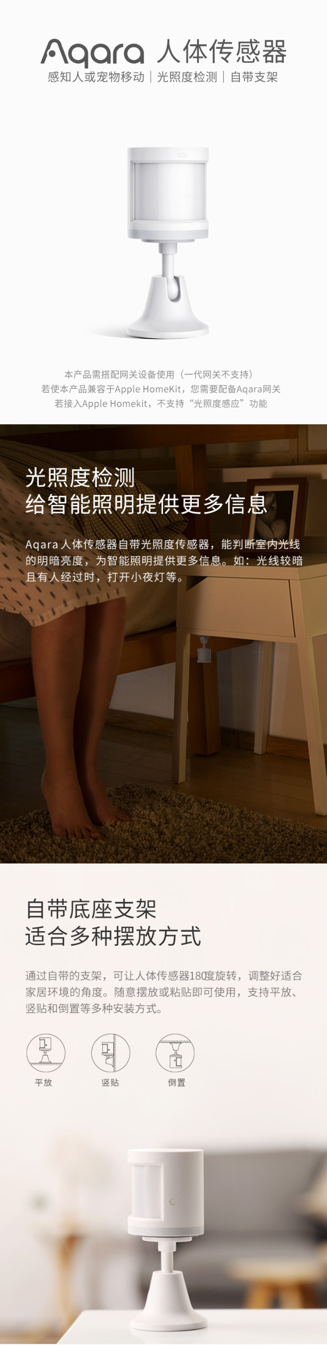感知人或宠物移动 光照度检测 自带支架