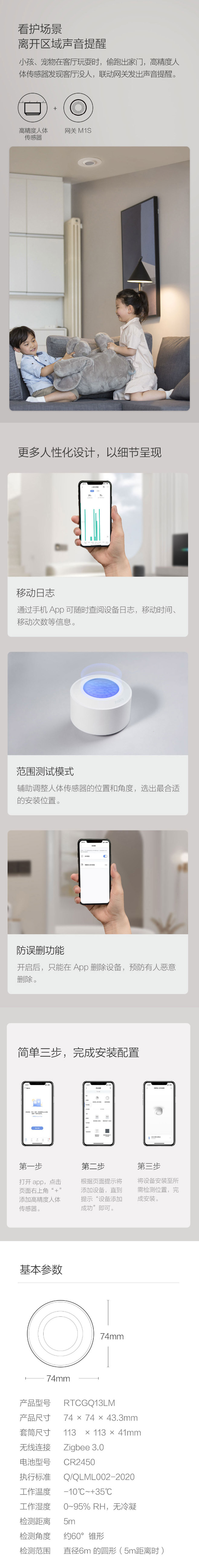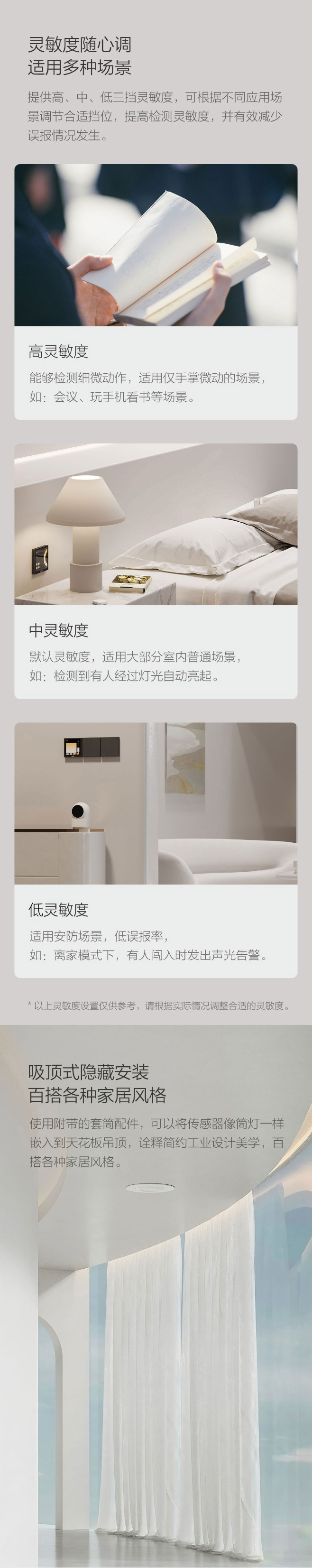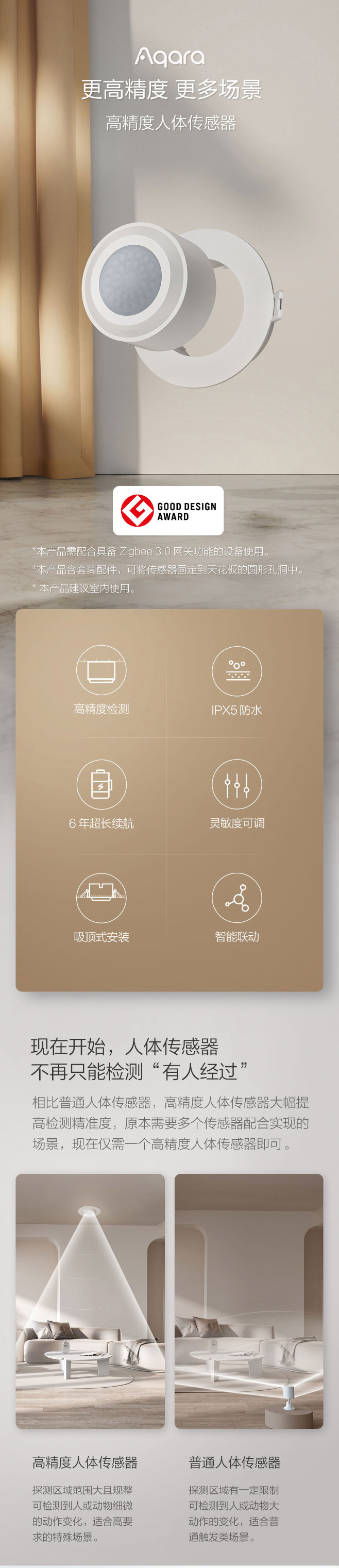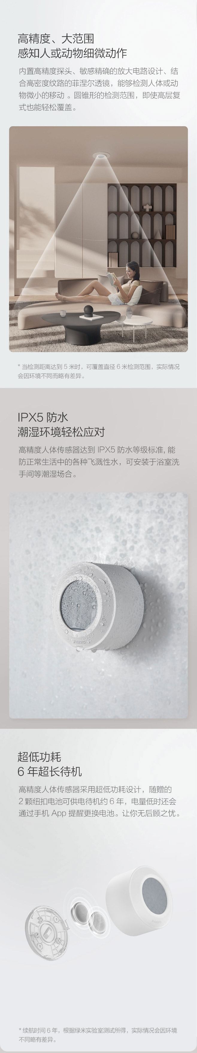高精度检测 IPX5防水 6年超长续航 灵敏度可调 吸顶式安装
