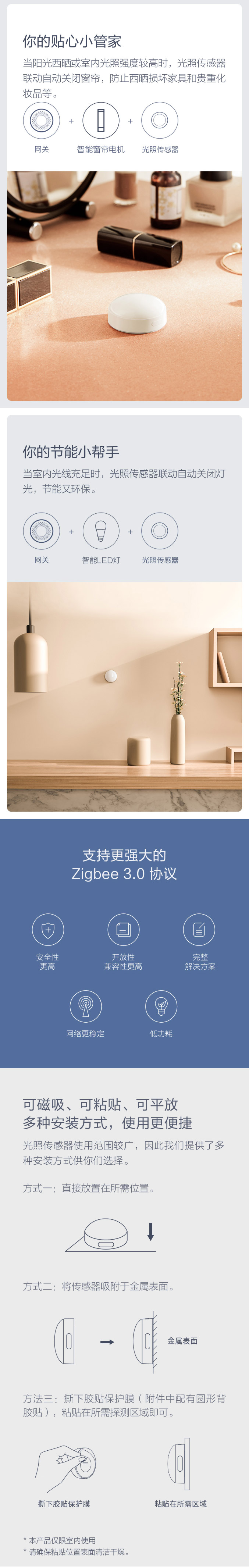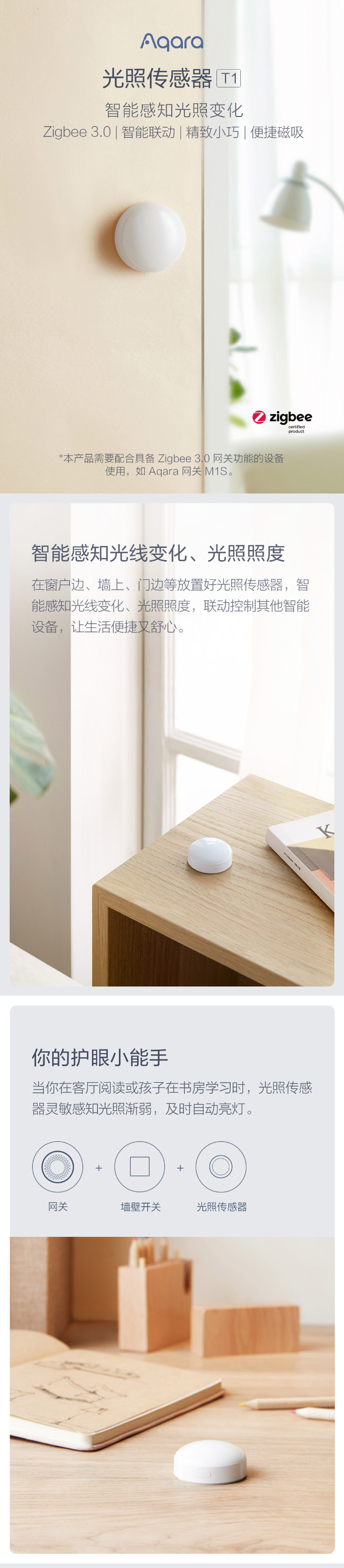 智能感知光照变化 Zigbee 3.0 精致小巧 便携磁吸
