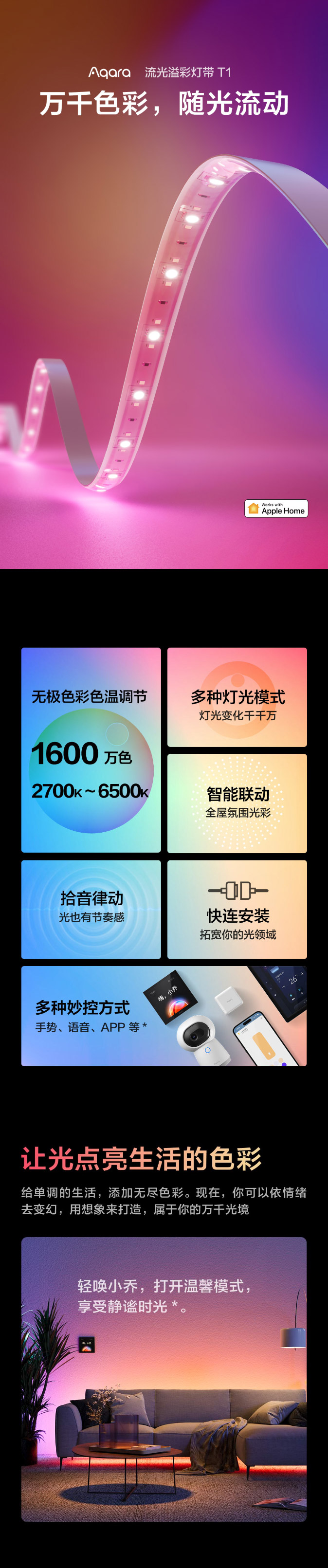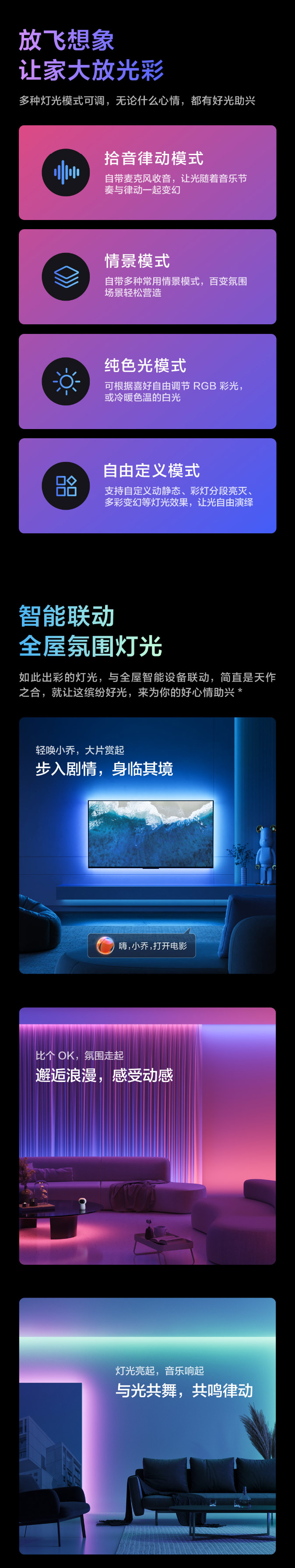 无极色彩色温调节 1600万色 多种灯光模式 拾音律动