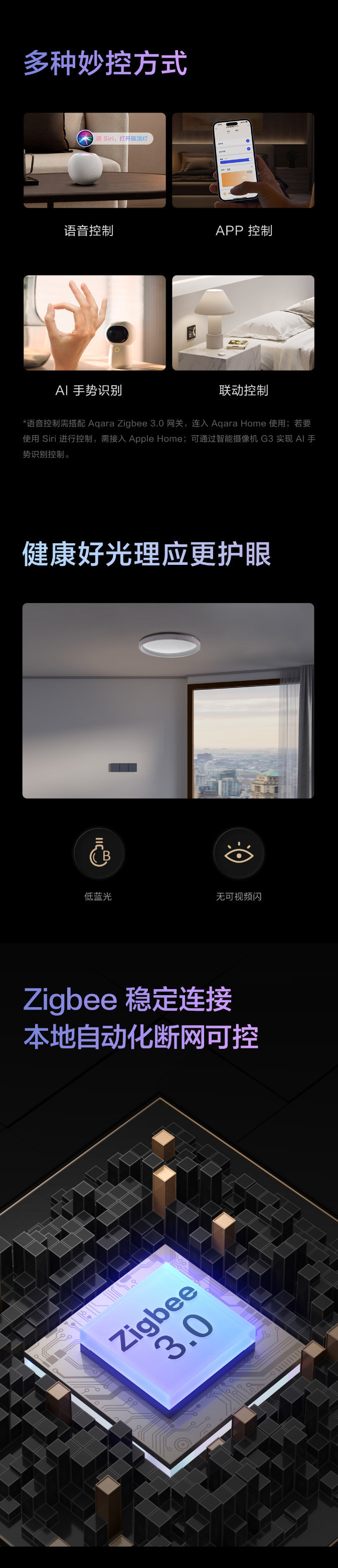 创新双色温主灯 RGB氛围灯 无极色温调节 Ra90高显色 低蓝光 无可视频闪