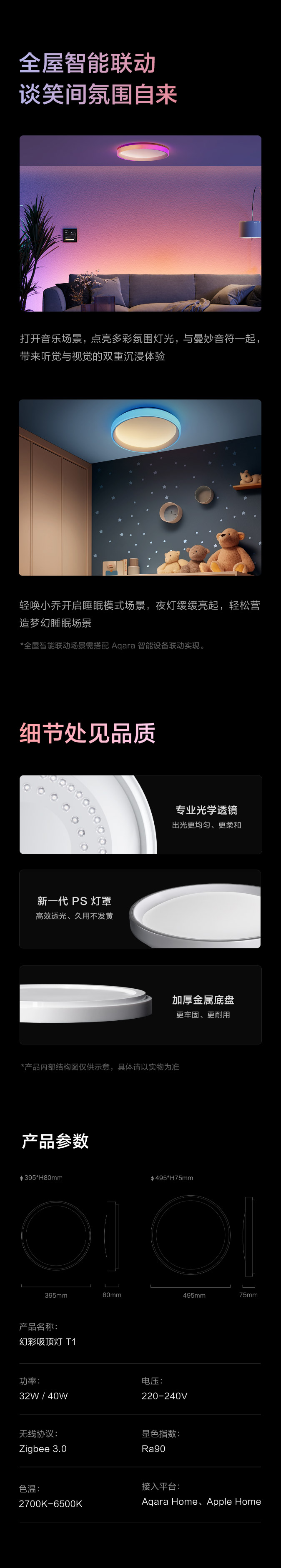 Aqara绿米幻彩吸顶灯 T1