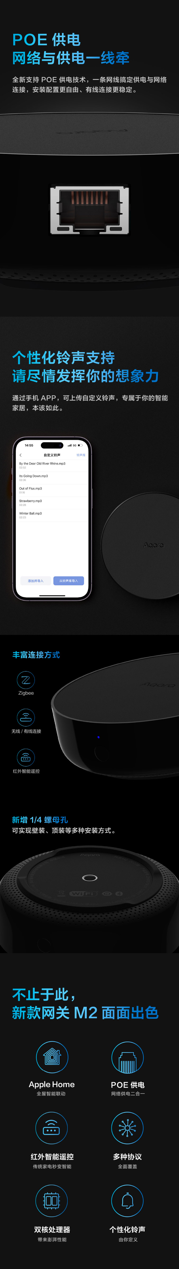 HomeKit全屋智能联动 POE供电 红外智能遥控 多种协议 双核处理器 个性化铃声