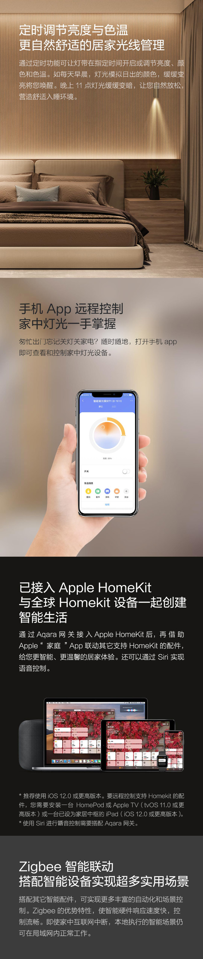 亮度色温调节 场景表换 渐明渐暗 App远程控制 定时控制 多灯控制 智能联动