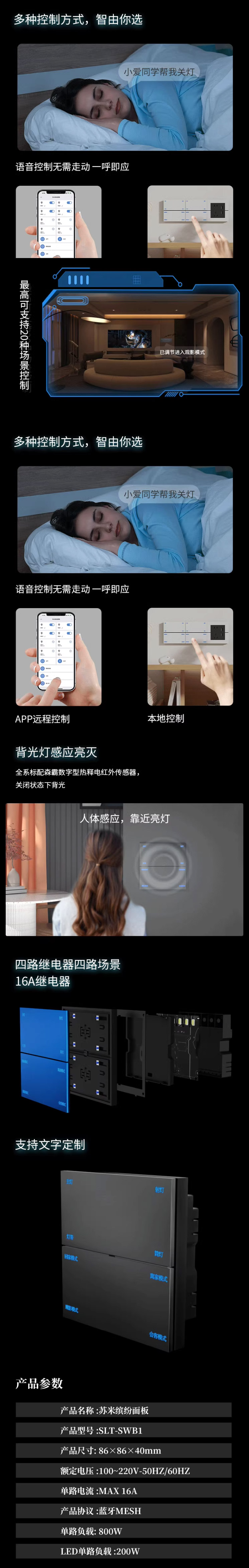 文字定制 四路继电器四路场景控制 背光灯感应亮灭