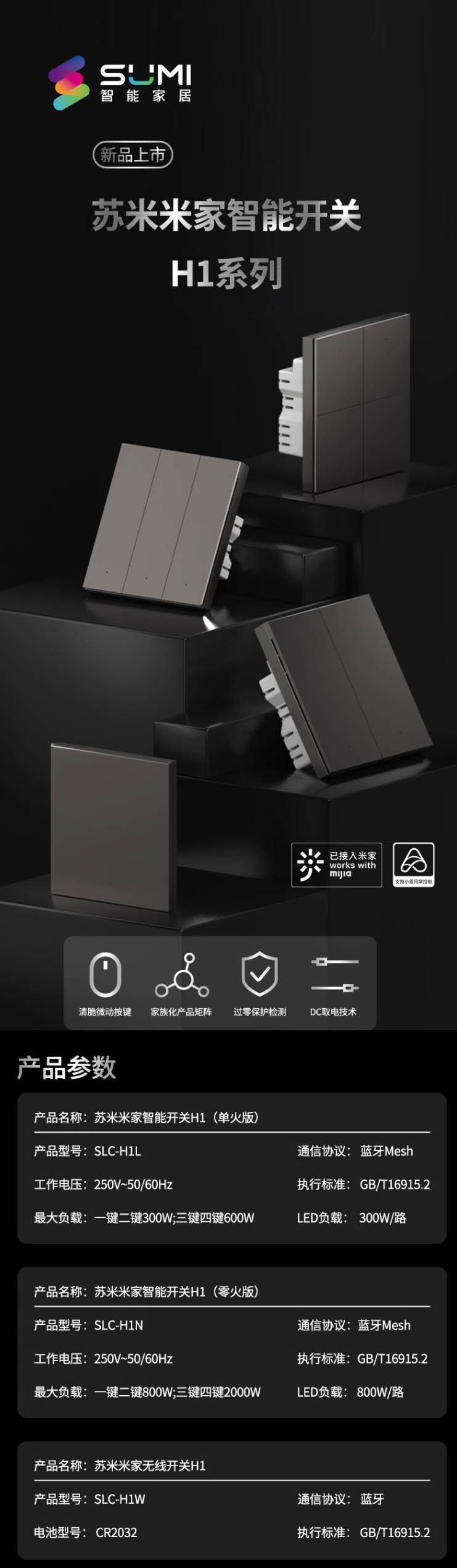 清脆微动按键 米家智能联动 超长待机