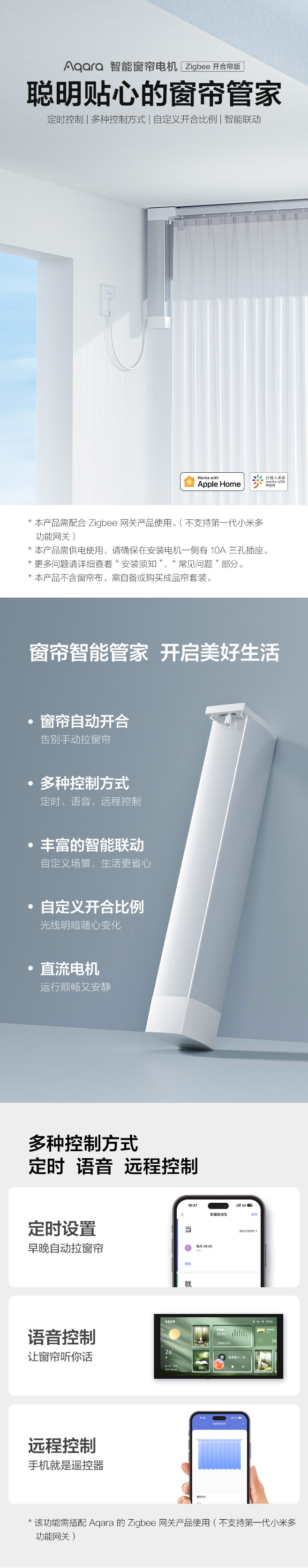 Aqara绿米智能窗帘电机Zigbee开合帘版