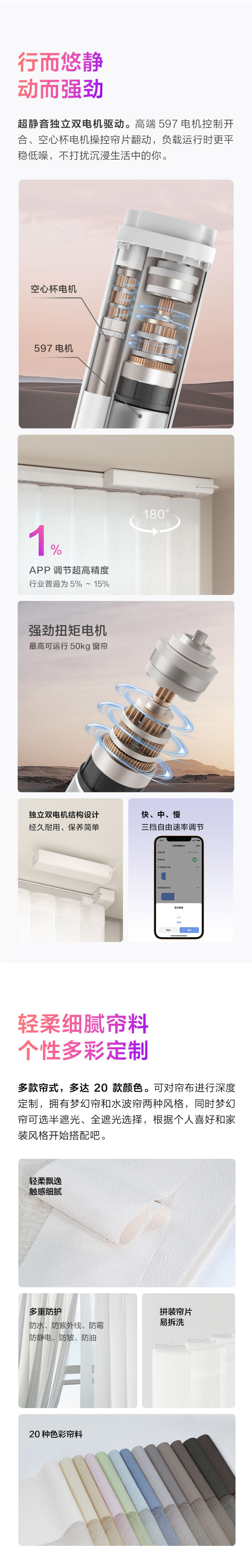 超静音独立双电机 强劲扭矩电机50Kg窗帘