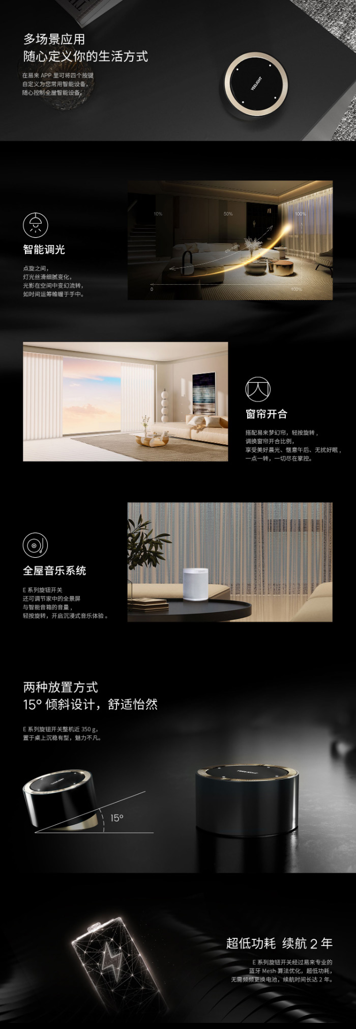 丝滑调光体验 多场景应用 灵敏度可调 两种形态 腕表极质感 续航两年
