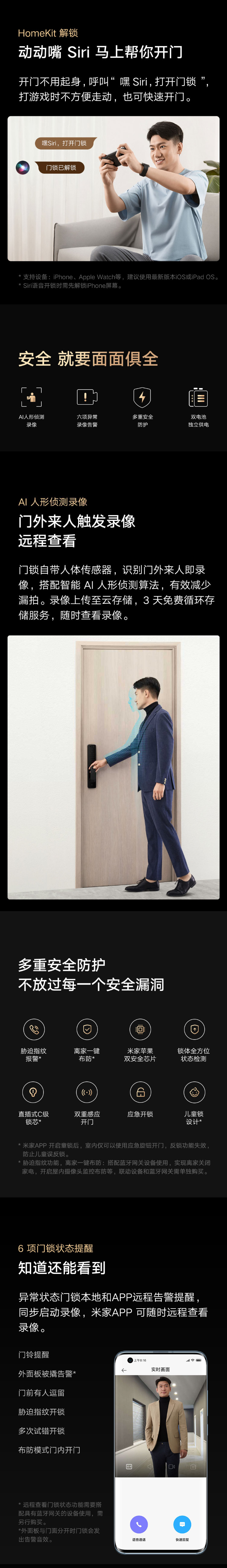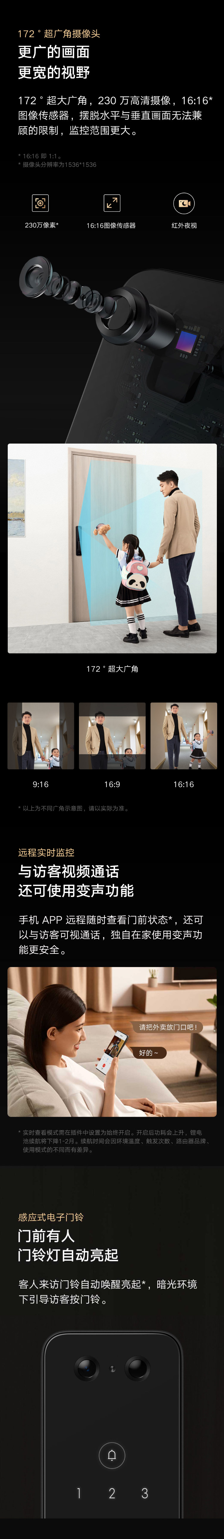 高端全自动锁体,172°高清广角摄像头,感应式电子门铃