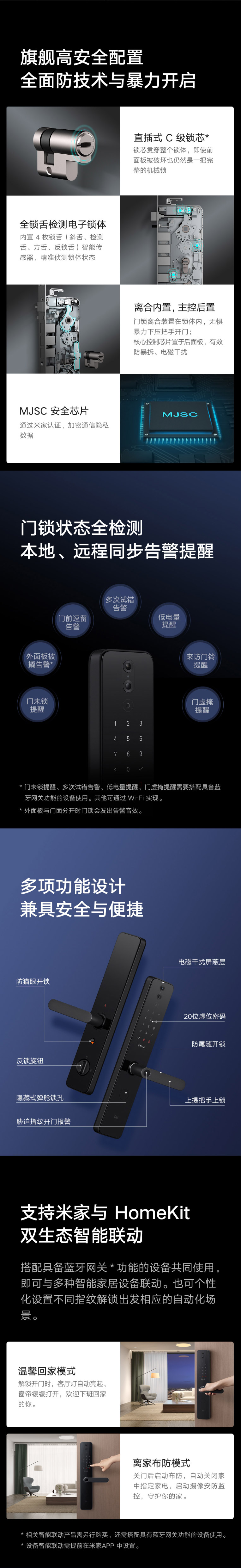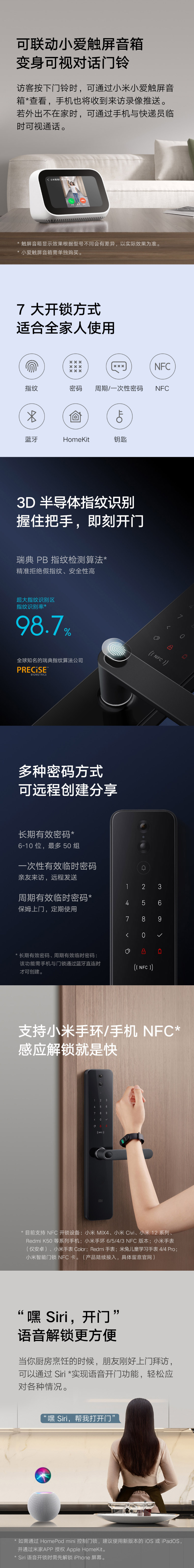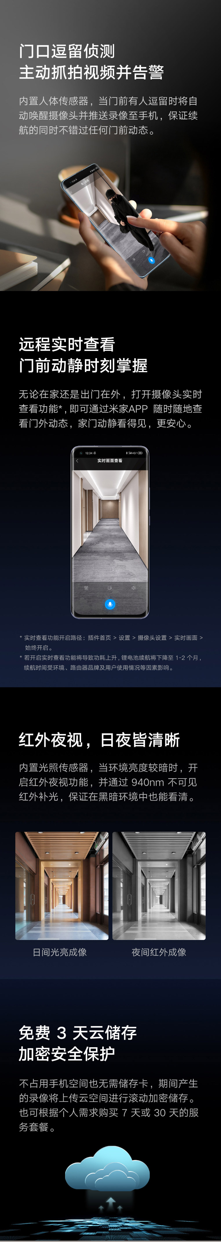 高清广角摄像,门口侦测,可视远程对讲,电子门铃,7大开锁方式