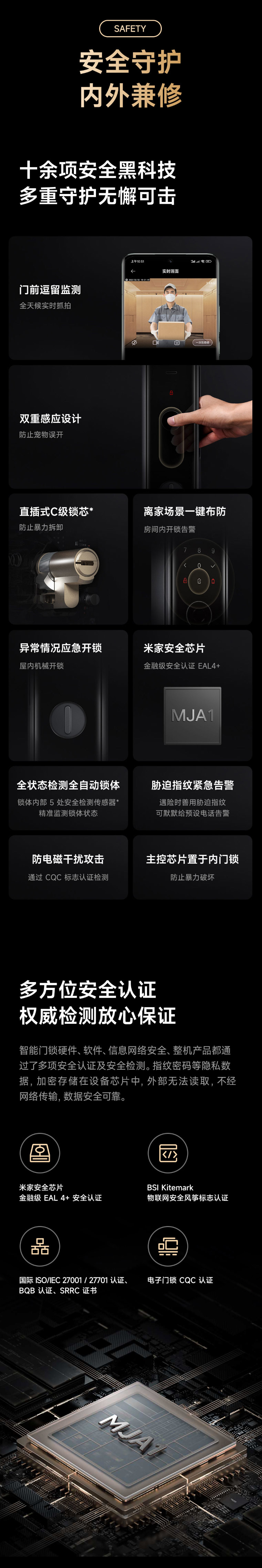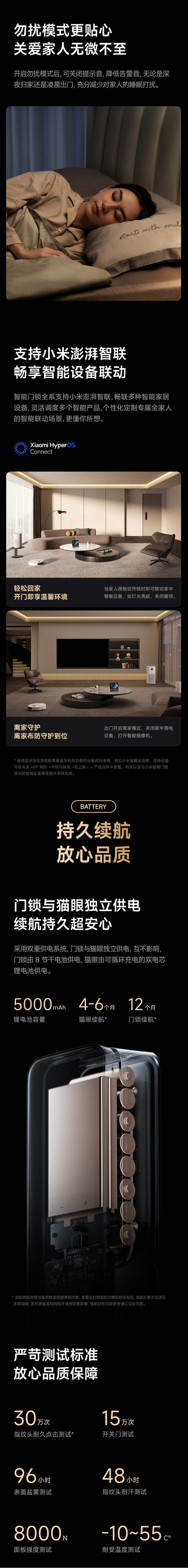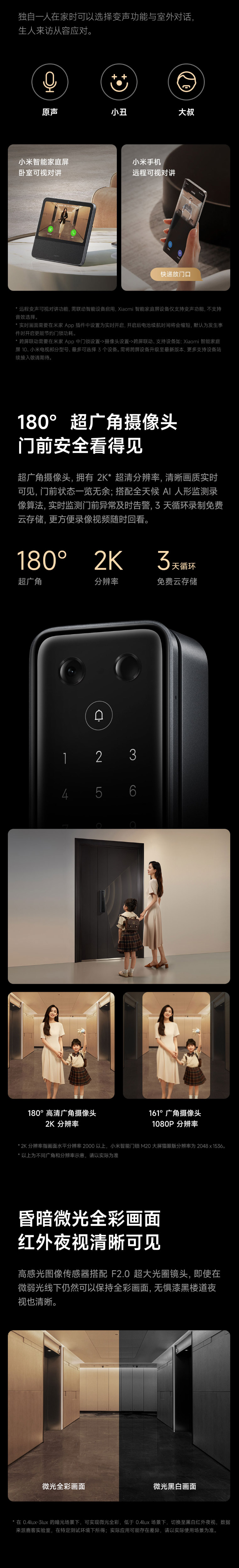 高清大屏,180°超广角摄像头 智能守护看得见 续航持久超安心 多种解锁方式 创新防夹手功能