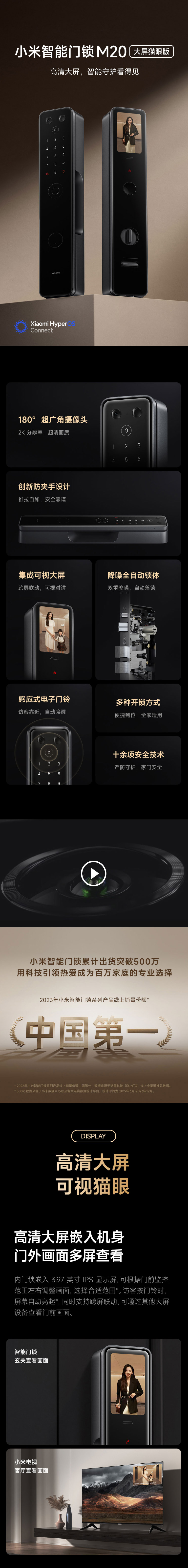 小米智能门锁M20 大屏猫眼版