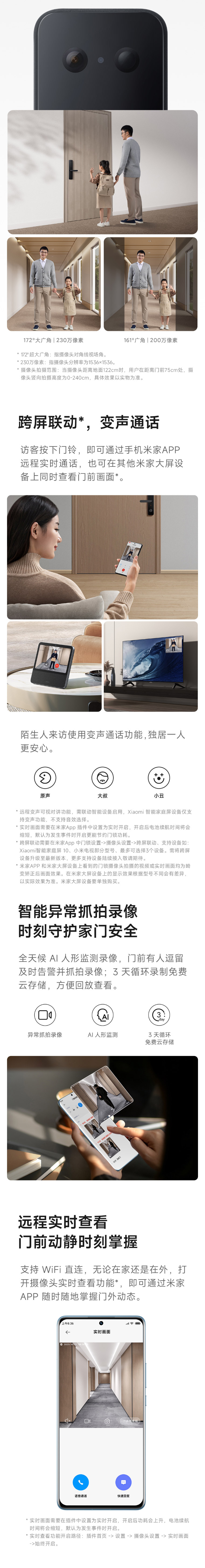 172°大广角摄像头,多屏可视猫眼,门外智能异常抓拍录像