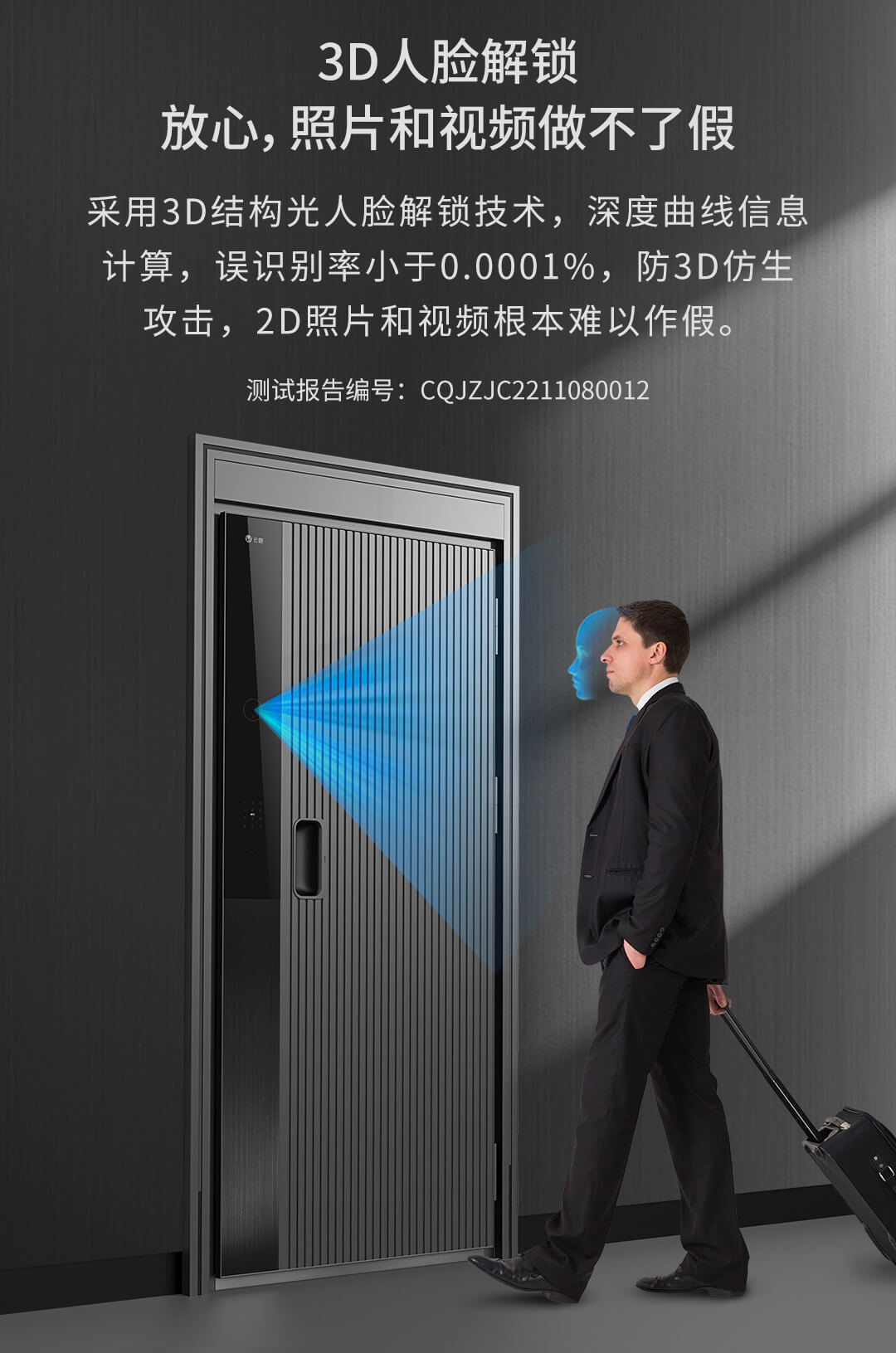 真一体化设计,多元化定制,甲级装甲门,3D刷脸秒开门