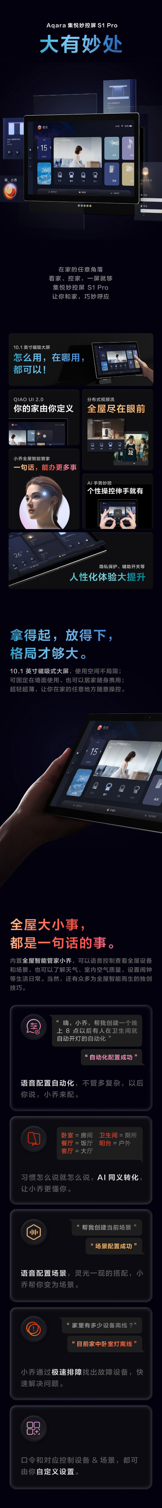 10.1英寸磁吸大屏 分布式视频流 小乔全屋智能管家 AI手势妙控