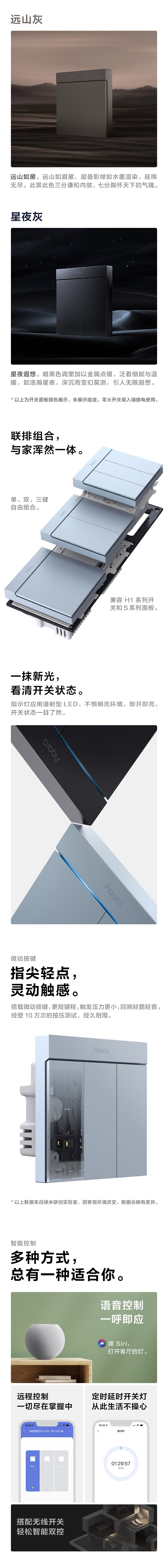 多颜色高颜值 支持联排安装 微动按键设计 多种控制方式
