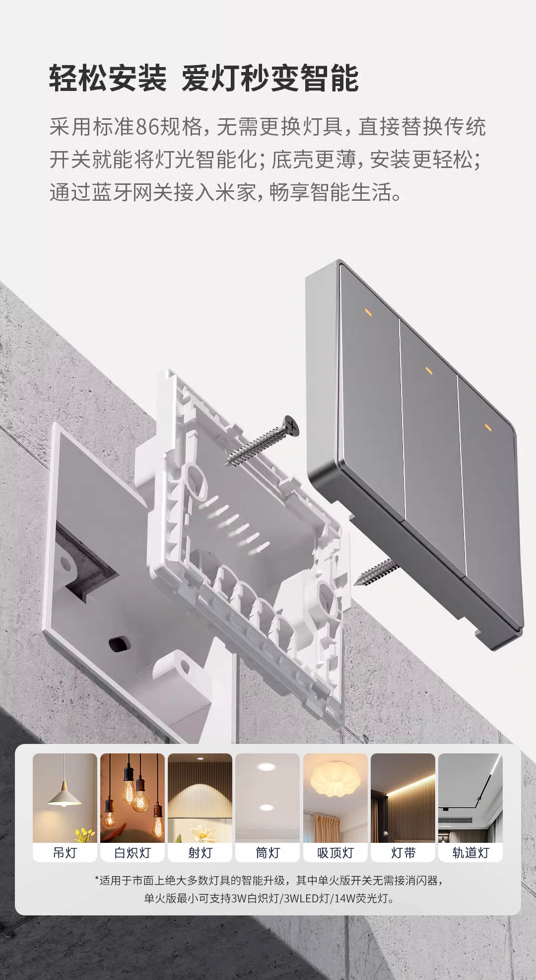 免改线即智能 语音控灯 AG玻璃 金属纯平面板